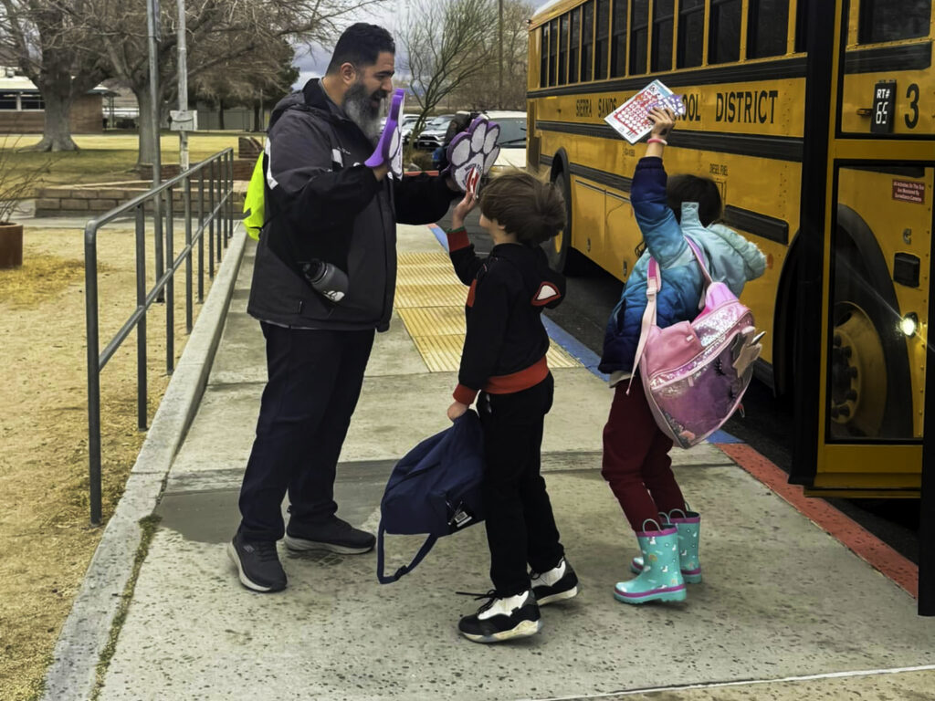 Mr. Gamboa, a Pierce parent who played a pivotal role in bringing the program to the school, greets students as they arrive to school.