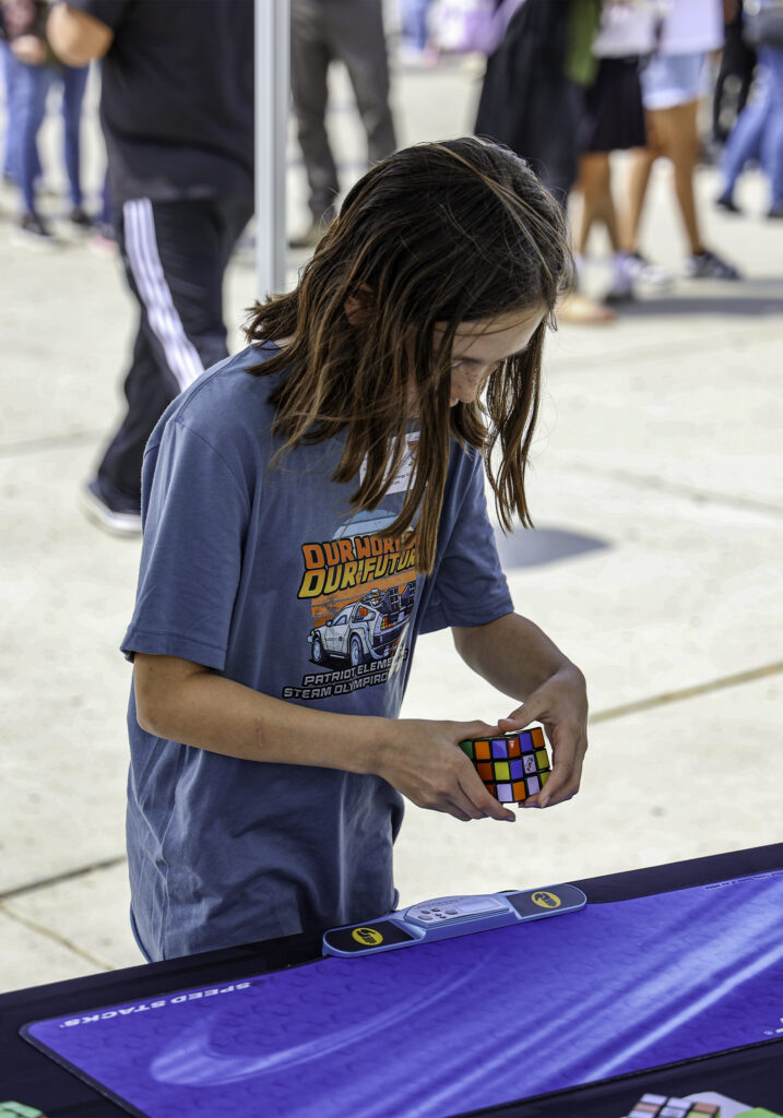 Some events involved catapults, mousetrap race cars, and rockets, while others required students to work on logic puzzles or make math calculations. Teams created complex Rube Goldberg machines that use a chain reaction to perform certain tasks. Students also created balloon towers and raced against the clock to solve a Rubik’s Cube.