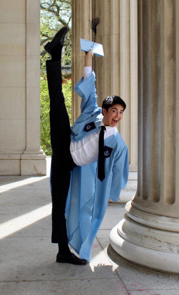 He also won his category in the California History Day competition and went on to capture a top national prize in 2022 before heading to Columbia University with his sights set on both intellectual and artistic goals. Determined to make space for a professional dance career, he finished his degree in just three years.