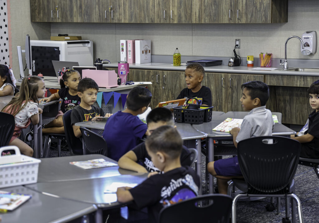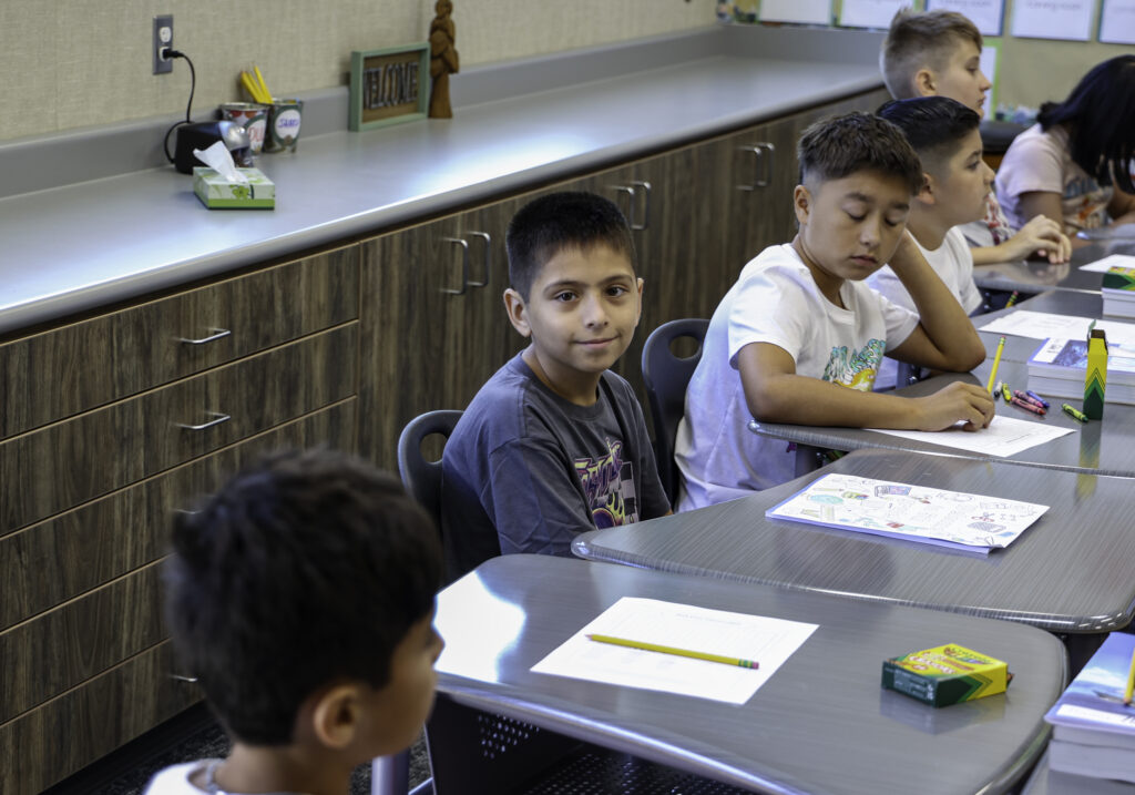 Mountain View will serve students from Transitional Kindergarten (TK) through eighth grade, starting this year as a TK-5 school with about 600 students, and adding a grade each year until reaching eighth grade. Special Education Teacher Melissa Dietrich-Sattler says this TK-8 format keeps the students at one school rather than breaking them up into elementary and middle schools, allowing kids to form a school identity and camaraderie with their fellow students.