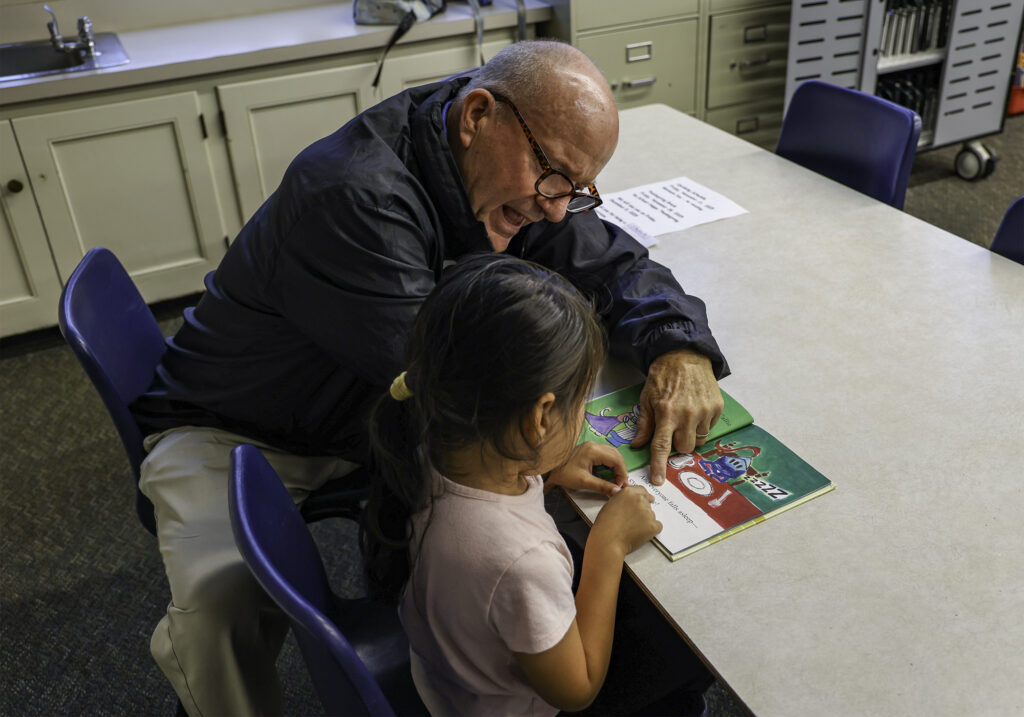 Lantz Collignon, a retired Social Service Supervisor with KCDHS, spends time working one-on-one with a young reader at Beardsley Elementary as part of the Community Reading Project. On his first day as a volunteer, he leaned in with patience and encouragement, guiding students through their sight words and helping build early reading confidence. Collignon, who was inspired to volunteer after years of reading to his own children and grandchildren, hopes to help students discover joy in books and strengthen foundational skills that will support them throughout school.