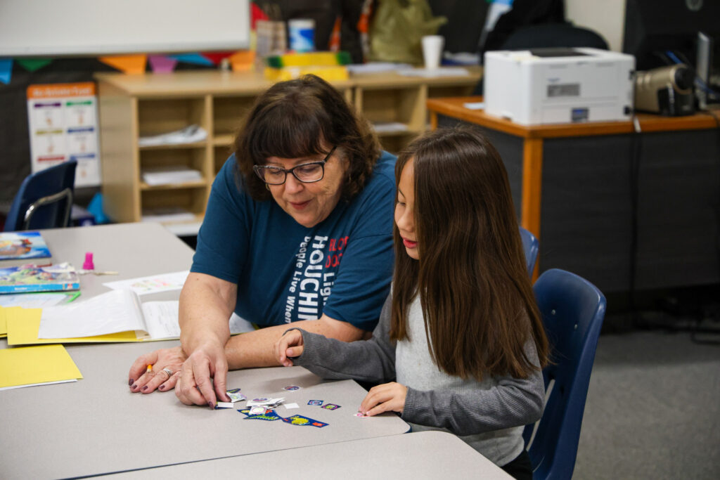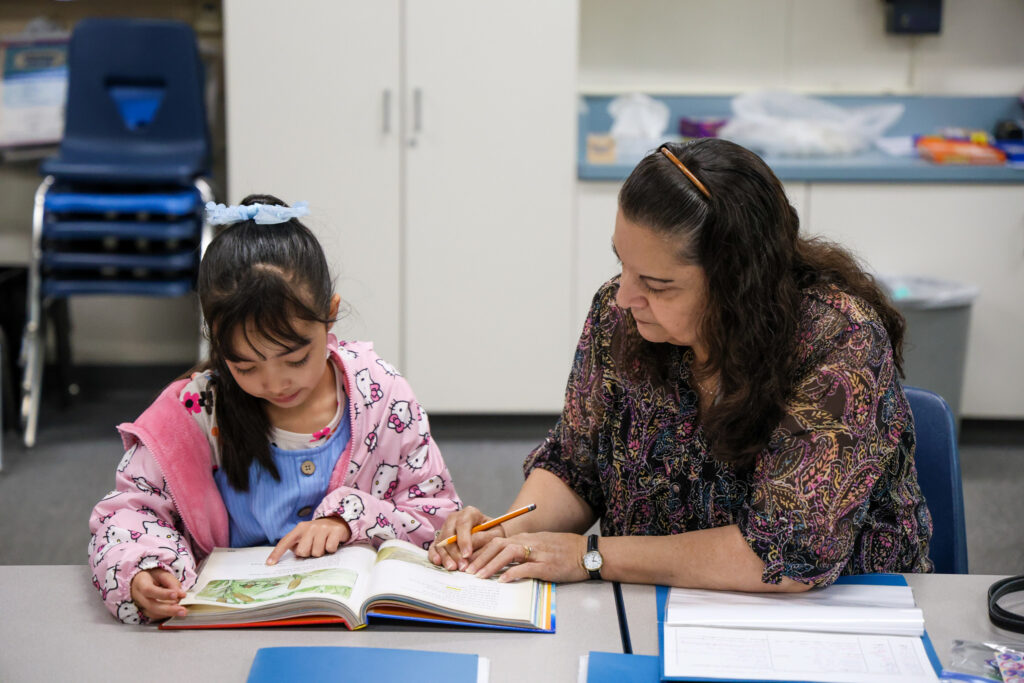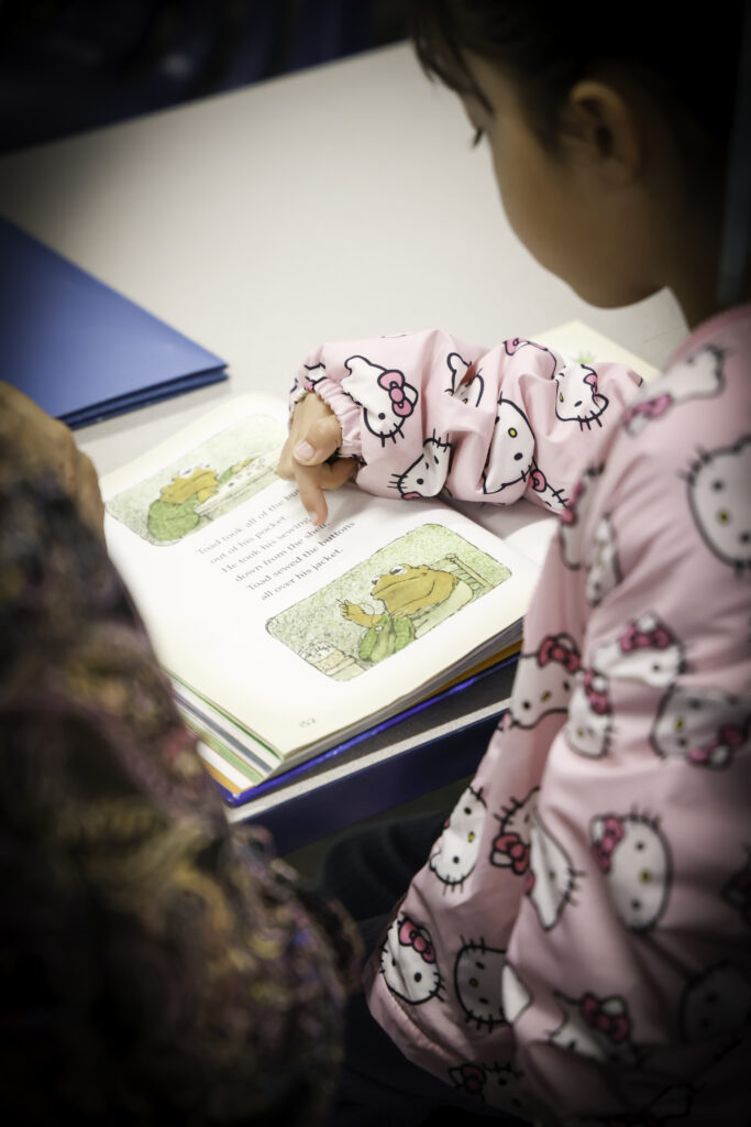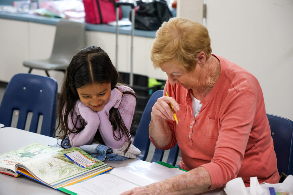 The book lies open, its pages lined with words that don’t yet come easily. A young reader leans forward, carefully piecing together each sound, tracing her finger across the page. At her side, a volunteer reading coach offers an encouraging smile, waiting for the moment when the sentence clicks. And then it does — the child beams with pride.