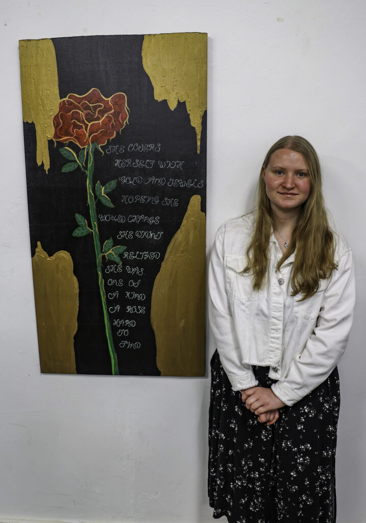 Senior Roxy Enriquez drew inspiration from Vincent Van Gogh’s famous Sunflowers painting for her first-ever acrylic-on-canvas piece. She personalized the painting by replacing the sunflowers with hydrangeas — her favorite flower — while maintaining Van Gogh’s signature style.