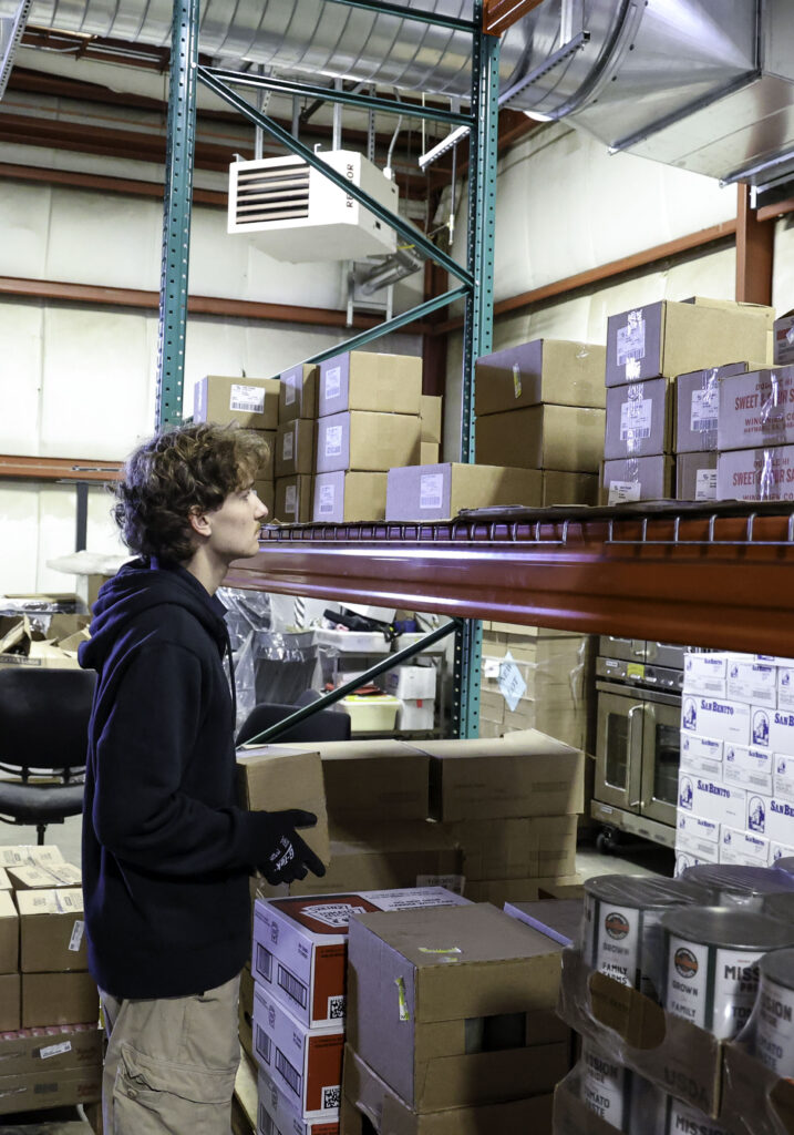 Students work across two distinct environments: the general KCSOS warehouse, which stores everything from furniture to student records, and the Food and Nutrition Services warehouse, where daily deliveries of fresh, frozen, refrigerated, and dry goods require precise coordination.