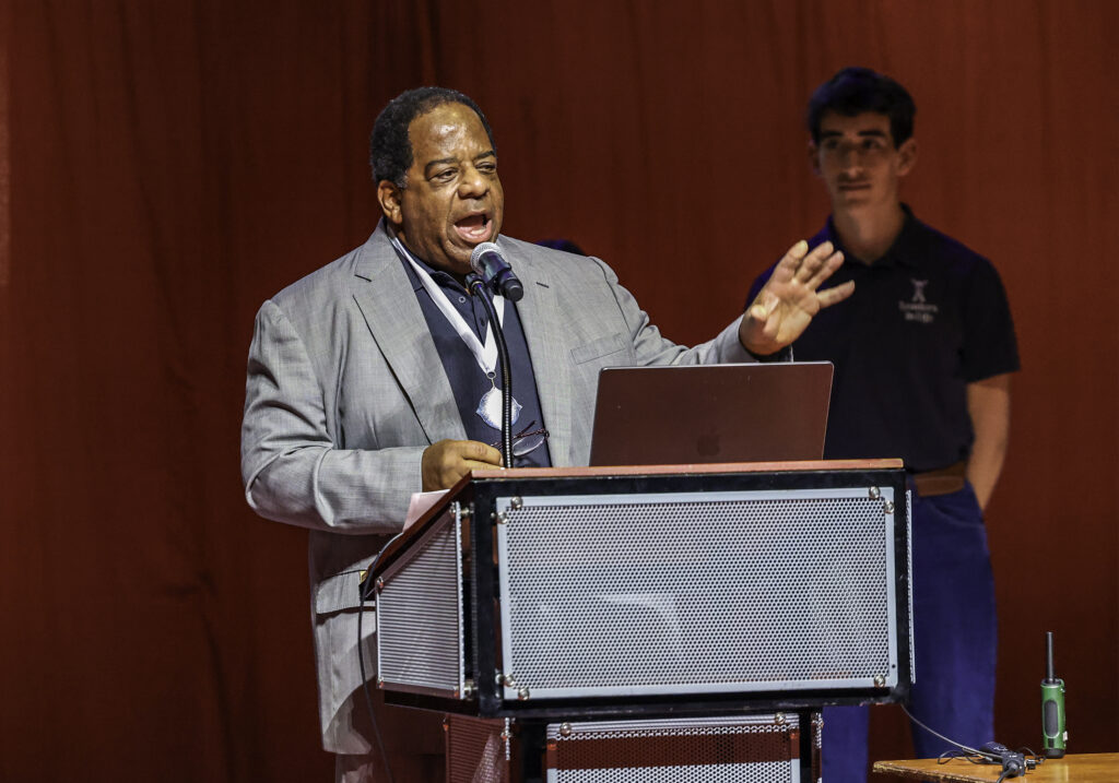 Morgan Clayton, founder of Leaders in Life, addresses students at the 2025 conference.