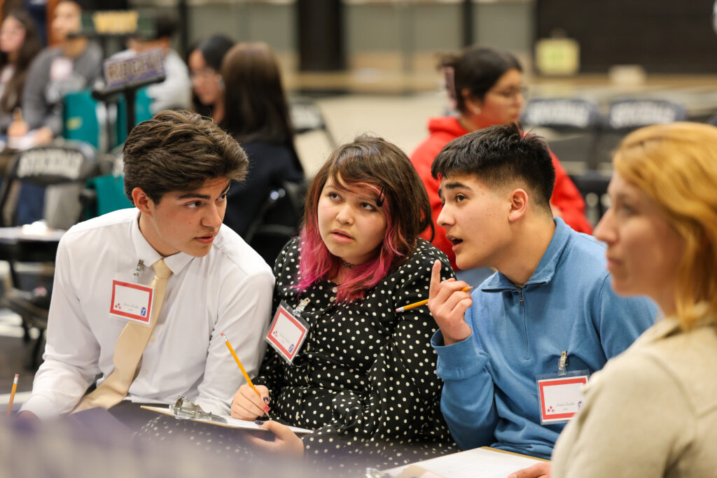 The Super Quiz is a pressure-packed 90-minutes of excitement, run like a TV quiz show. Team members have ten seconds to collaborate and answer each question. Running totals are displayed on large, visible flip cards, bringing about enthusiastic reactions from the audience. The first place winner of the Super Quiz also took home the Milo Hall Trophy, which was awarded this year to Liberty High School.