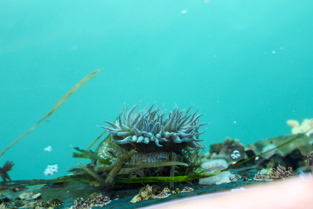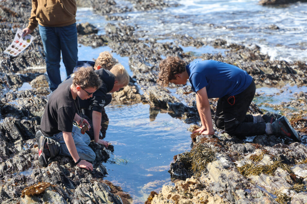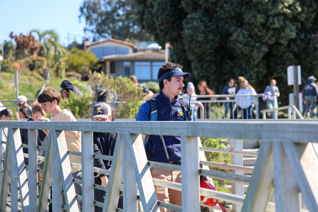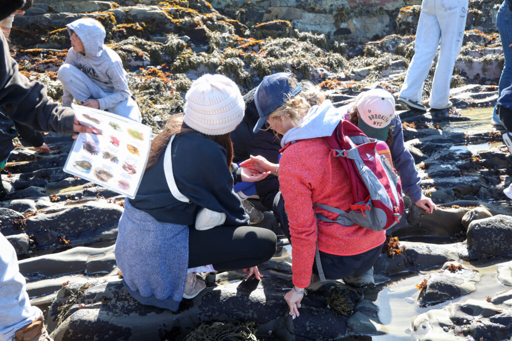 Excited voices drift across the shoreline as students spread out for their morning activities along the coast. One group pauses to watch otters floating through the water with their pups resting on their bellies. Nearby, others search the rocky tide pools for sea urchins, crabs, and other marine life tucked between the rocks. Just down the dock, bursts of laughter erupt during a lesson known as “belly biology,” where students lean over the water to observe and gently touch organisms like sea anemones and seaweed.