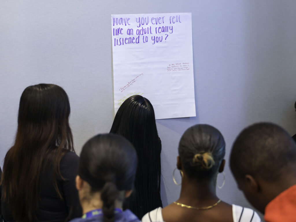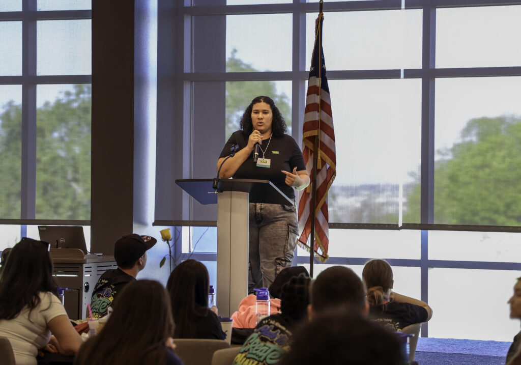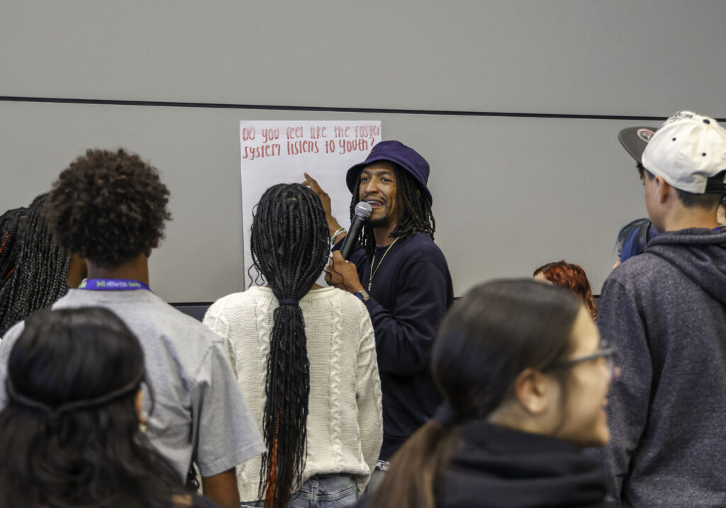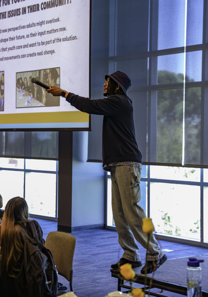 Throughout the conference, students had opportunities to hear from speakers, participate in workshops, and engage in conversations designed to amplify their voices. One session led by community activist and nonprofit leader Jovon Dangerfield encouraged students to use their voices.